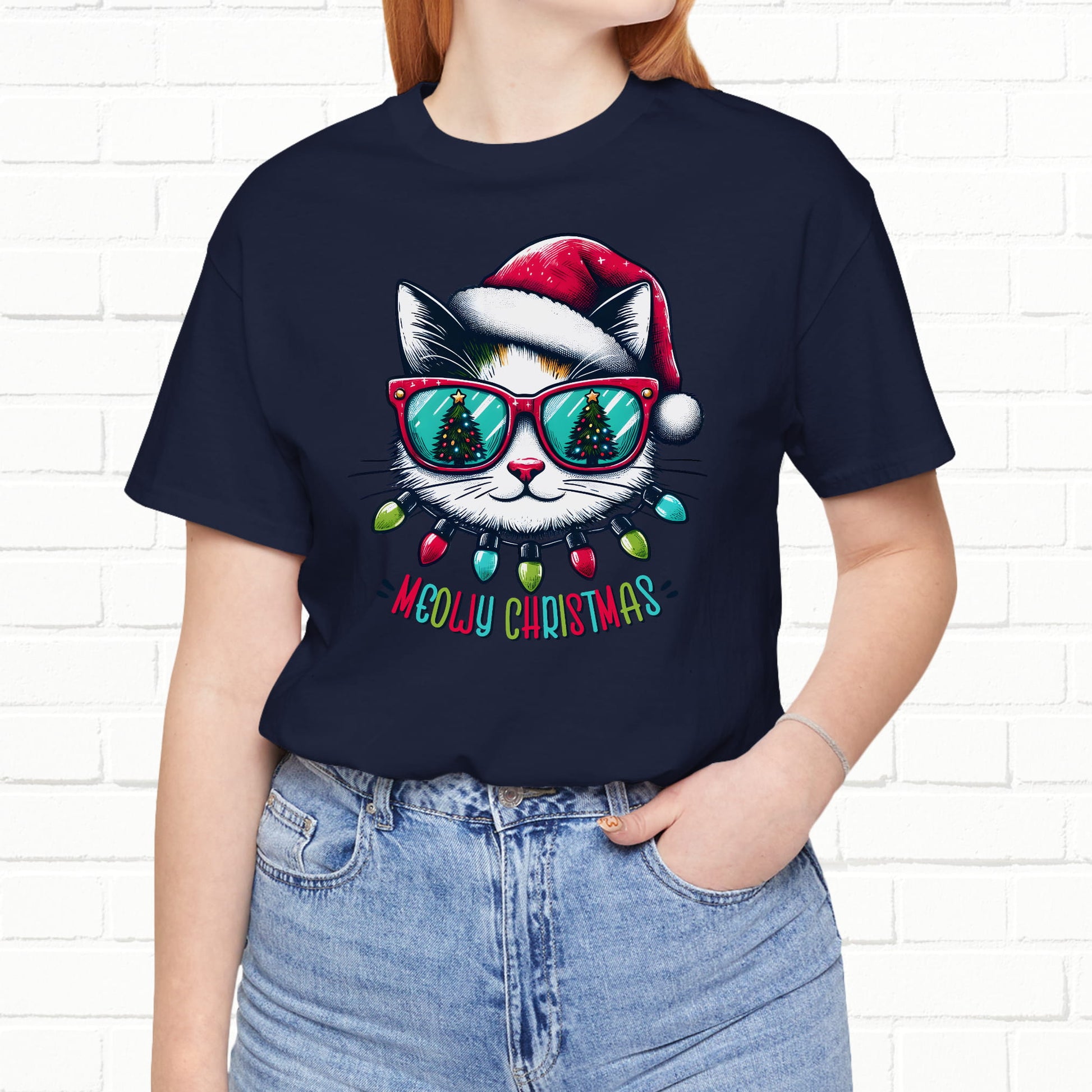 Meowy Christmas Funny Cool Cat Unisex T-Shirt